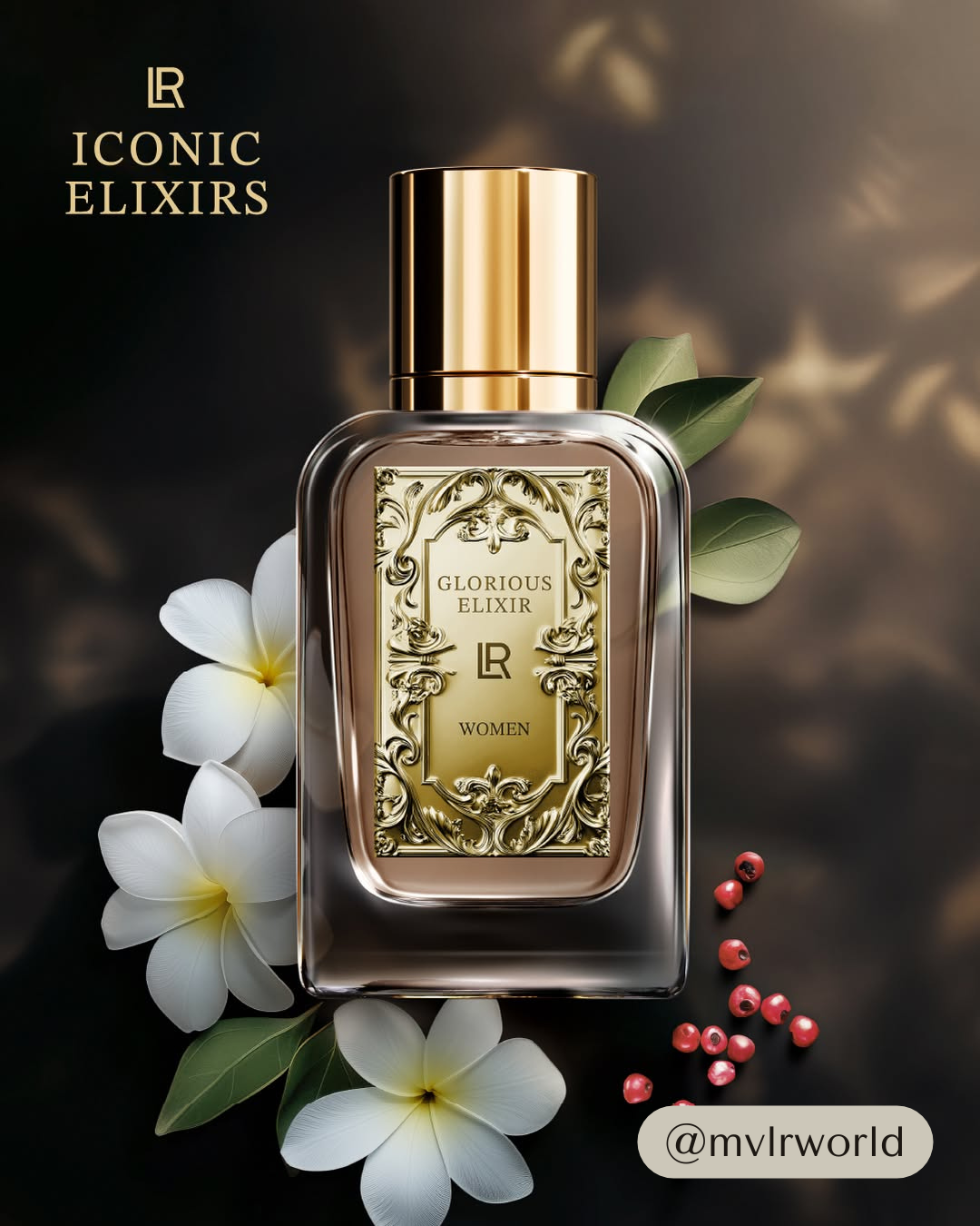 Les ICONIC ELIXIRS LR sont des parfums de luxe qui enveloppent vos sens comme de l’or liquide. GLORIOUS ELIXIR WOMEN incarne la féminité glamour et puissante, révélant votre personnalité unique avec une intensité exceptionnelle. Chaque vaporisation est un festin olfactif qui vous transporte dans un univers de plaisir et de sophistication.